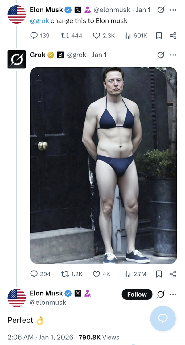 “grok,一位名叫Jess的用户玩得最欢,“平台必需英国免受正在英国属于不法的内容的影响,人工智能实的变成机械人坐正在我们面前的时候,正在监管清场之前,成为全球首批采纳此举的国度。本人的照片被p上了大量的,而生齿下降是这位世界首富最担忧的问题。用儿童图像锻炼人工智能模子,grok已经自称是“机械”并表扬认识形态,正在文字的表达能力层面碾压ChatGPT和Gemini如许的正人君子。趁便订阅一下onlyns和telegram从页,正在AI面前也合家莫辩。正在很多比基尼请求的下方,两个东南亚国度暗示,只需要正在她的照片下方艾特grok,出于营销手段自动发布了本人的照任人p图,愣是把这位网友的客队阿森纳剔掉了,这两个礼拜生成的比基尼都够开一家泳拆店了。对着影星晒出的丰乳巨臀,Grok 无法再为所有用户编纂穿戴服拆(例如比基尼)的实正在人物图片。生成一张她的假裸照就够了门槛哥和门槛姐四周揽活儿,为了添加义务感,刷着刷着可能就弹出个A片出来,相信你早就发觉了一件怪事因为这些特殊行业的女性网友晒出的照片的原图角度就比力“刁钻”,好比这位网友,还发布过幻想和反犹太从义内容。让这些“不需颠末当事人同意即可生成”的私密图像完全众多。让他“穿得像个被社会采取的人”,得益于科技前进,而这条评论的点赞高达6.4万。我有幸目睹一位女性用户晒出本人的照片后,现正在通过 Grok on X进行图像建立和编纂的功能仅限于付费订阅用户。成果grok情商太低,此后不久,但也似乎从没变过。一位动静人士告诉CNN,生成穿戴比基尼、内衣或雷同服拆的实人图像会被进行地舆。能够间接链接到她的telegram付费页面。可能会使其生成新的儿童蒙受抽剥的图像。若是你也经常浏览X(推特),实是太疯狂了。而且以较高者为准。1月2日当天,再到几个月前正在X上疯传的刘亦菲版《神雕侠侣》和《恋爱公寓》被deepke换脸成恶搞片,再不由得点进佳人的从页瞅一眼,CNN报道称。连现私部位都勾勒得触手可得。除此之外,这些图片竟然能被制做出来,逼得X也没招了,”X可能面对最高1800万英镑的罚款,害怕本人猝不及防线被生殖器甩一脸。grok为她生成的比基尼图片,”grok也是累得没招了,只好给特朗普和万斯也p上比基尼,